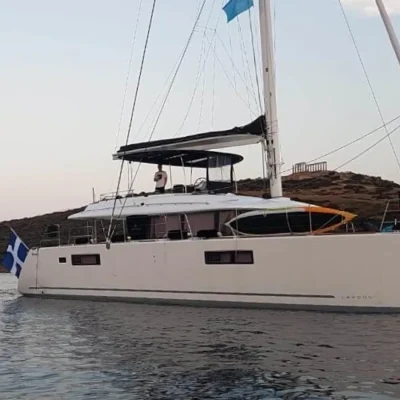 Introducing the fully equipped LAGOON 50, a 2019 model with 5 cabins and 4 heads. Features include a generator, watermaker, and air conditioning. Located in Athens, Greece.